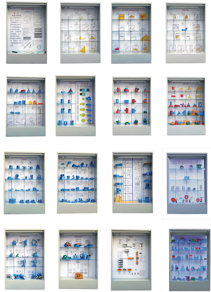 《機(jī)械制圖》示教陳列柜是適用于全日制普通中專、職工中學(xué)、電視中專、職業(yè)高中機(jī)械類專業(yè)的制圖教學(xué),亦可供其它相近專業(yè)使用或參考。為突出培養(yǎng)學(xué)生畫圖能力和看圖能力這條主線,對(duì)機(jī)械專業(yè)學(xué)生理論學(xué)習(xí),使用范圍增強(qiáng)認(rèn)識(shí),加深理解,本陳列柜是一套提高教學(xué)質(zhì)量的理想設(shè)備。