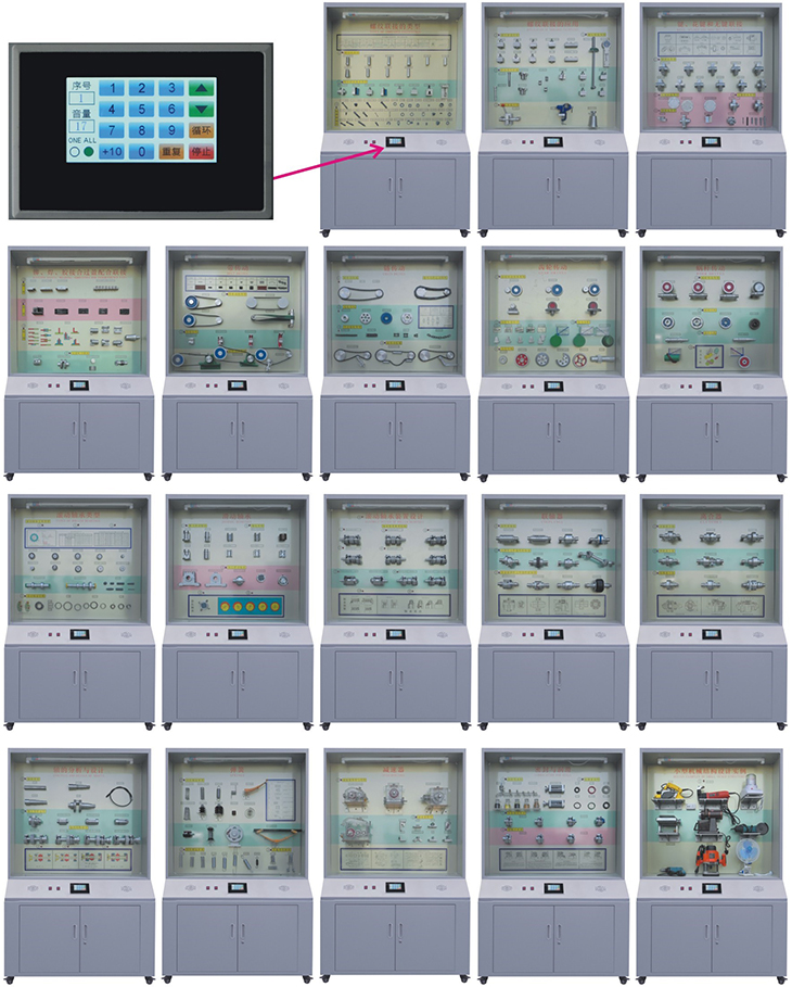機械設(shè)計零件陳列柜,是根據(jù)機械設(shè)計(零件)課程基本要求設(shè)計制造的實驗設(shè)備。陳列柜通過機械零件模型或?qū)嵨,配合相?yīng)的圖文資料,形象地展示與解說機械設(shè)計的基本知識,加強學生對通用機械零件的類型、結(jié)構(gòu)特點及其設(shè)計的感性認知,為進一步學習機械設(shè)計奠定基礎(chǔ)。
