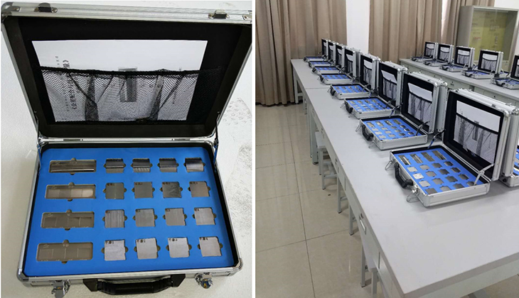 表面粗糙度對比測量組合實訓裝置是根據《公差配合與技術測量》課程的基本教學要求,精心設計的一套表面粗糙度對比測量組合訓練產品。它由對比樣塊、檢測零件、配套圖紙及實訓指導書組成。其目的是通過表面粗糙度對比測量,加深學生對表面粗糙度基本概念的了解,掌握表面粗糙度測量的方法的技能,為公差配合在后續課程中的應用奠定扎實的基礎。