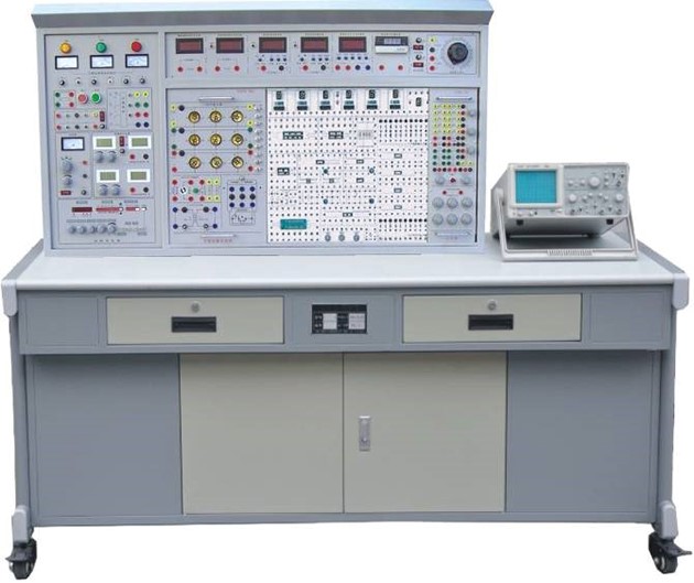 提供四位十進制譯碼顯示器、8位邏輯電平開關、8位電平指示器、三態(tài)邏輯筆、脈沖信號源(正、負輸出單次脈沖和頻率為0.5Hz~300KHz連續(xù)可調(diào)的計數(shù)脈沖源各一路),設有一些高可靠圓腳集成電路插座(9P、14P、16P、28P、40P若干只)。實訓箱還配有單管/負反饋兩級放大器、射極跟隨器、RC串聯(lián)選頻網(wǎng)絡振蕩器、差動放大器及低頻OTL功率放大器共五塊固定線路實訓板。可采用固定線路或分立元件靈活組合進行實訓。
